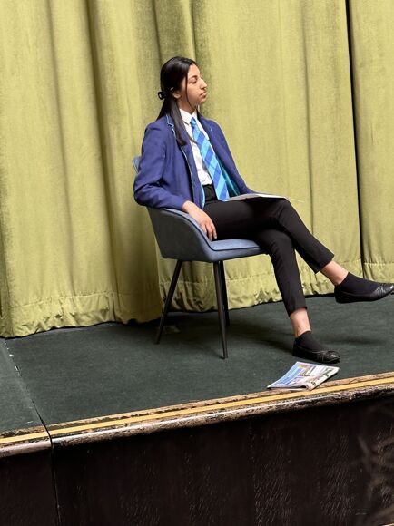Pupils took part in a variety activities ranging from viewing short extracts from a film, participating in a Drama workshop by actor and Globe Theatre workshop leader Simon Buller and performing on duologues on stage.